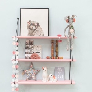 Moi j’ai craqué sur de la déco pour la future chambre de la belette : une étagère, un tableau et des corbeilles de rangement, le tout dans des tonalités très douces :
