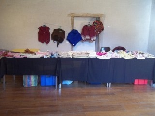 Ensuite, je suis tombée sur un stand de vêtements tricotés main. Bon, à la bas, ce sont des vêtements pour enfants, mais là, comme par hasard, il y avait des petites vestes et boléros pour adultes à 25€. La laine est exploitée par la fille et c’est la maman qui tricote. Si vous avez des cadeaux à faire à des enfants, ça vaut vraiment le coup. Et si vous voulez un modèle pour adulte, je pense qu’il suffit d’ppeler et de demander!!!